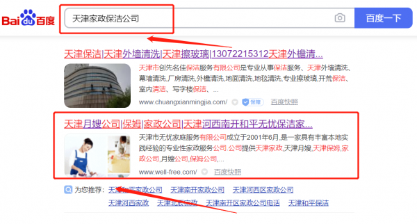 天津市*憂家庭服務(wù)有限公司關(guān)鍵詞搜索排名排名效果展示