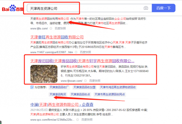 天津*宇再生資源回收有限公司網(wǎng)站排名保證在首頁效果