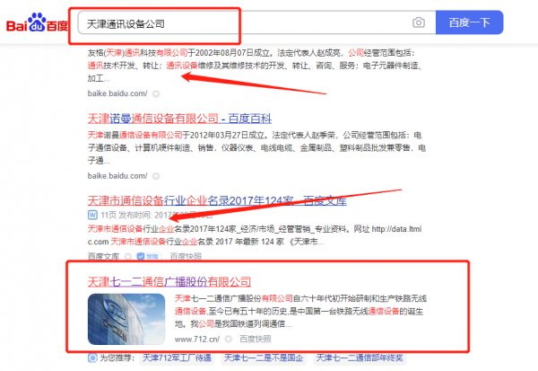 天津七*二通信廣播股份有限公司優(yōu)化排名最快上詞效果展示