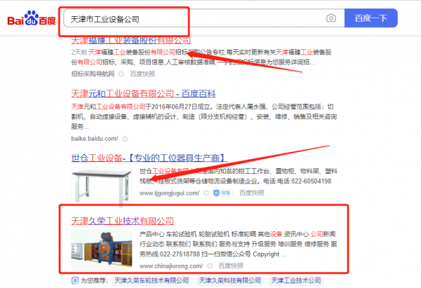 天津久*工業(yè)技術(shù)有限公司百度關(guān)鍵詞排名專(zhuān)注一站式品牌營(yíng)銷(xiāo)整合推廣