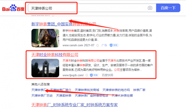天津市時*鐘表科技有限公司百度排名到首頁按天扣費