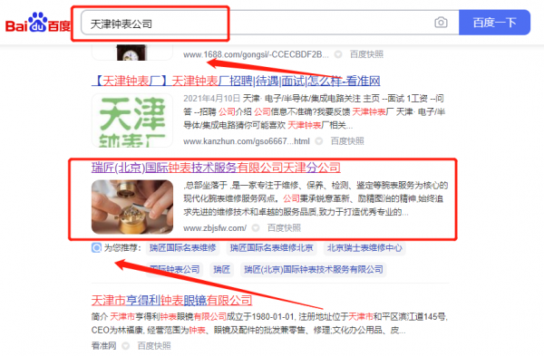 瑞*(北京)國際鐘表技術(shù)服務有限公司天津分公司百度排名到首頁無排名不收費