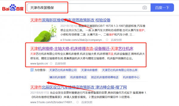 天津藝*機(jī)床有限公司選用我司企業(yè)改裝維保的網(wǎng)站優(yōu)化產(chǎn)品,其SEO關(guān)鍵詞有改裝維保。通過百度SEO優(yōu)化排名技術(shù)幫助企業(yè)網(wǎng)站挖掘客戶潛在需求,提升關(guān)鍵詞排名和客戶咨詢量。通過搜索引擎優(yōu)化為企業(yè)帶來持續(xù)、低成本的自然流量,提升企業(yè)銷售額,使企業(yè)由被動營銷網(wǎng)絡(luò)推廣變?yōu)橹鲃訝I銷網(wǎng)絡(luò)推廣。天津藝*機(jī)床有限公司成立于2008年,是經(jīng)天津市市場監(jiān)督管理局審核的有資質(zhì)的公司,其統(tǒng)一社會信用代碼:9112011367**61182F。公司地址:天津市北辰區(qū)大張莊鎮(zhèn)九園公路科技園666號。