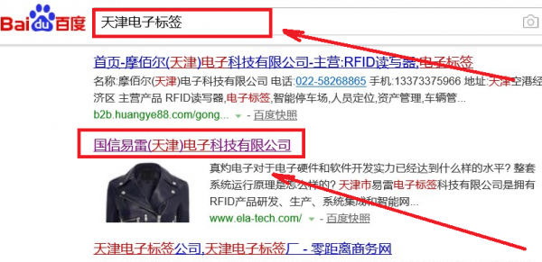 我們公司與國信易雷(天津)電子科技有限公司合作中,對這個公司所經(jīng)營的電子標(biāo)簽這個行業(yè)提供了快速排名,與該公司的合作,更多的客戶讓我們公司為其提供快速排名,通過每一次合作,我們公司不斷完善自己,同時希望合作伙伴在經(jīng)營的路上越來越好。