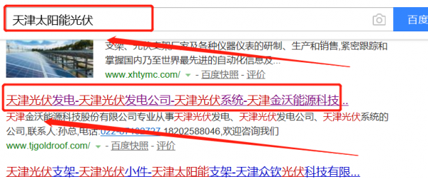 我們公司與天津金沃能源科技股份有限公司合作中,對這個公司所經(jīng)營的太陽能光伏這個行業(yè)提供了快速排名,同時讓我們積累到更多的經(jīng)驗,與天津金沃能源科技股份有限公司這個公司建立了友好的合作伙伴的關(guān)系,也提高了海洋網(wǎng)絡(luò)在同行業(yè)的知名度,提高了太陽能光伏在同行業(yè)的知名度,發(fā)展越來越好。