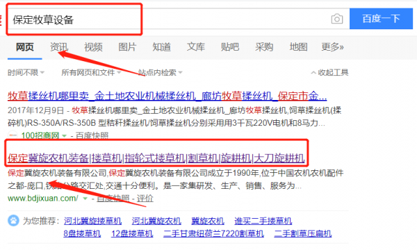 我們公司與保定冀旋農(nóng)機(jī)裝備有限公司合作中,對(duì)這個(gè)公司所經(jīng)營(yíng)的牧草設(shè)備這個(gè)行業(yè)提供了百度快照排名,與該公司的合作,更多的客戶讓我們公司為其提供百度快照排名,通過(guò)每一次合作,我們公司不斷完善自己,同時(shí)希望合作伙伴在經(jīng)營(yíng)的路上越來(lái)越好。