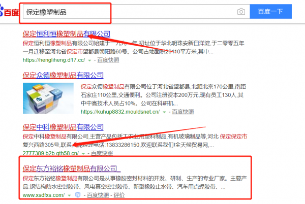 保定*方裕銘橡塑制品有限公司跟本公司簽訂快速排名合同