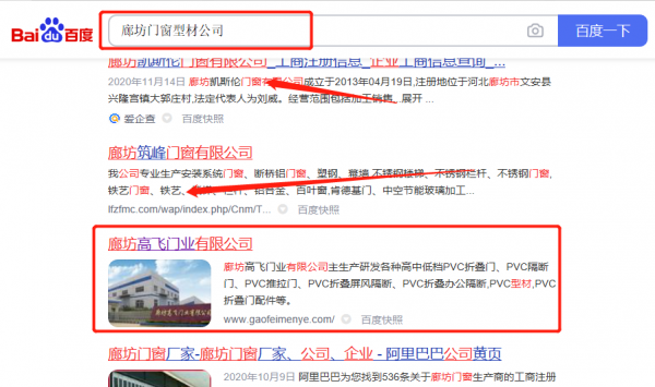 廊坊*飛門(mén)業(yè)有限公司網(wǎng)站推廣最快上詞效果展示