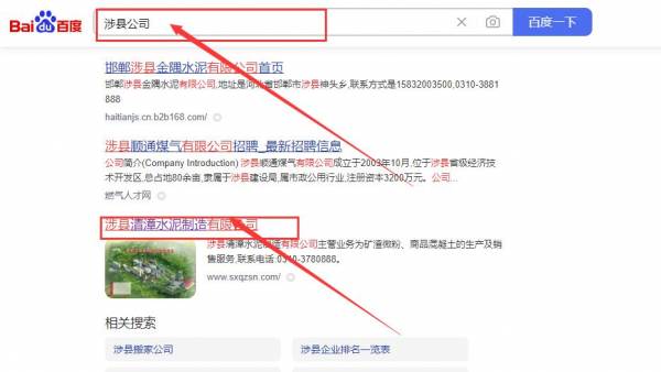 涉縣清*水泥制造有限公司百度關(guān)鍵詞排名效果展示
