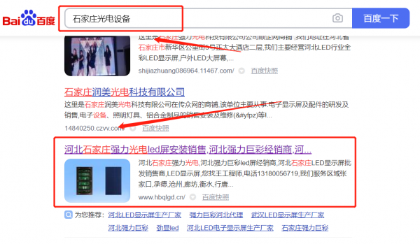 石家莊強(qiáng)*光電科技有限公司選用我司企業(yè)光電設(shè)備的網(wǎng)站優(yōu)化產(chǎn)品,其SEO關(guān)鍵詞有光電設(shè)備。關(guān)鍵詞不限點(diǎn)擊次數(shù),大量搜索流量直達(dá)官網(wǎng);PC + 手機(jī)端搜索首頁自然排名,365天持效穩(wěn)定收錄。石家莊強(qiáng)*光電科技有限公司成立于2009年,是經(jīng)石家莊市市場(chǎng)監(jiān)督管理局審核的有資質(zhì)的公司,其統(tǒng)一社會(huì)信用代碼:911301026**345017P。公司地址:河北省石家莊市長(zhǎng)安區(qū)勝利北街185號(hào)。