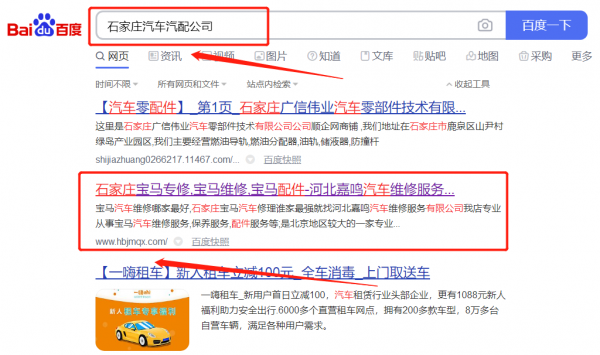 河北嘉*汽車維修服務(wù)有限公司網(wǎng)絡(luò)推廣最快上詞效果展示