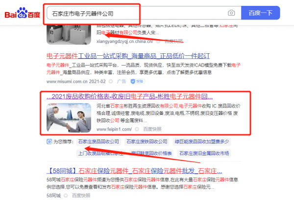 石家莊*勝廢品回收有限公司選用我司企業(yè)電子元器件行業(yè)的網(wǎng)站優(yōu)化產(chǎn)品,其SEO關(guān)鍵詞有電子元器件??焖賰?yōu)化系統(tǒng)火速推采用智能數(shù)據(jù)系統(tǒng),效果一目了然,包括關(guān)鍵詞排名,消費,余額等,并通過大量的數(shù)據(jù)分析優(yōu)化廣告效果。石家莊*勝廢品回收有限公司成立于2017年,是經(jīng)石家莊市市場監(jiān)督管理局審核的有資質(zhì)的公司,其統(tǒng)一社會信用代碼:91130124M**8Y5PQ5K。公司地址:河北省石家莊市欒城區(qū)白佛趙村中心路。