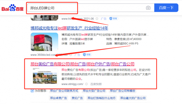 邢臺*倫廣告有限公司選用我司企業(yè)LED屏行業(yè)的網(wǎng)站優(yōu)化產品,其SEO關鍵詞有LED屏。利用全新的SEO技術,在短時間內使關鍵詞占領搜索引擎首頁,為企業(yè)官網(wǎng)獲取更多更精準的流量。大數(shù)據(jù)分析,針對性定位,推廣,專屬定制最適合您,效果最全面的的推廣方案,更有效果保證!邢臺*倫廣告有限公司成立于2014年,是經邯鄲市經濟開發(fā)區(qū)市場監(jiān)督管理局審核的有資質的公司,其統(tǒng)一社會信用代碼:91130502**6497698U。公司地址:河北省邢臺市橋東區(qū)新華南路保安小區(qū)1#樓大門洞北第一間一、二層門市 。
