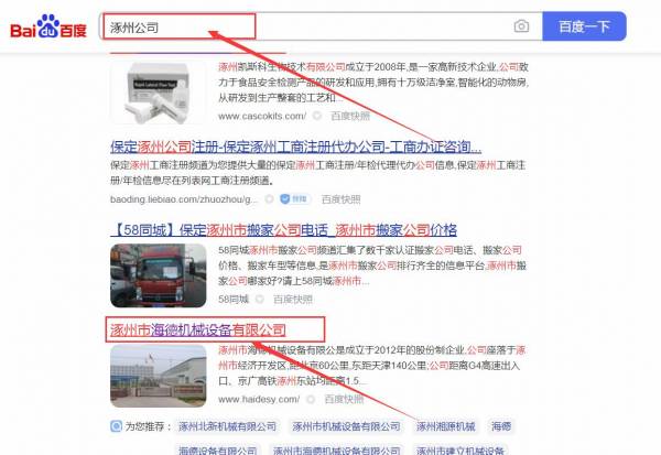 涿州市海*機械設(shè)備有限公司網(wǎng)站優(yōu)化排名效果展示
