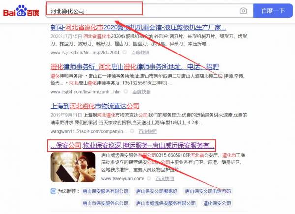 唐山市威*保安服務(wù)有限公司網(wǎng)站優(yōu)化排名效果展示