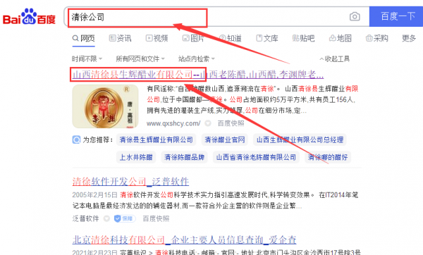 山西清徐縣生*醋業(yè)有限公司網(wǎng)絡(luò)推廣最快上詞效果展示