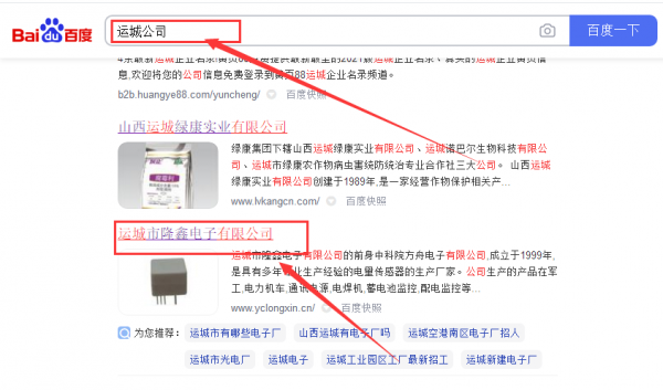 運城市*鑫電子有限公司網(wǎng)站優(yōu)化排名效果展示