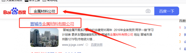 晉城市金屬材料有限公司百度排名快照案例欣賞
