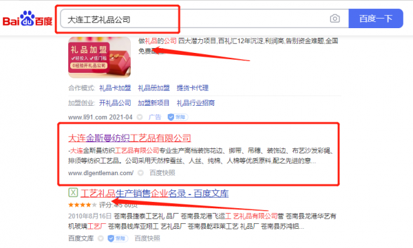 大連金*曼紡織工藝品有限公司新站排名排名效果展示