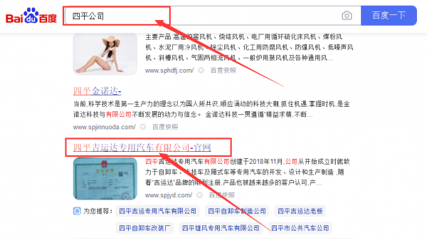 四平吉*達(dá)專用汽車有限公司關(guān)鍵詞推廣排名效果展示