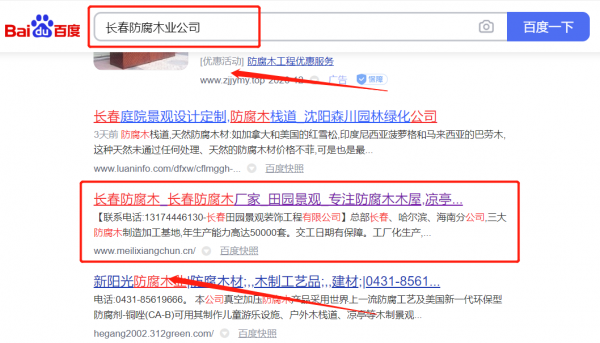 我們公司與長(zhǎng)春市*園景觀裝飾工程有限公司合作中,對(duì)這個(gè)公司所經(jīng)營(yíng)的防腐木業(yè)這個(gè)行業(yè)提供了關(guān)鍵詞推廣,與該公司的合作,更多的客戶讓我們公司為其提供快速排名,通過(guò)每一次合作,我們公司不斷完善自己,同時(shí)希望合作伙伴在經(jīng)營(yíng)的路上越來(lái)越好。