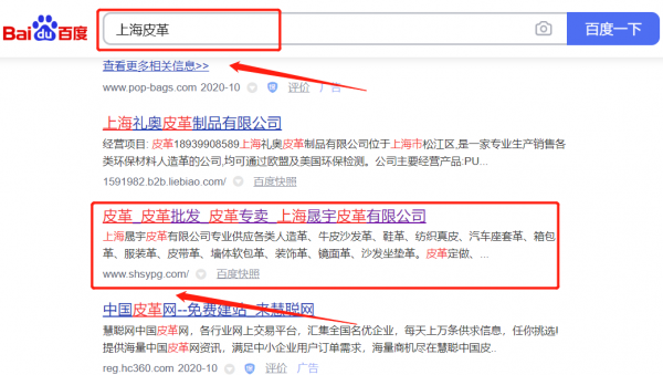 上海*宇皮革有限公司萬詞霸屏排名效果展示