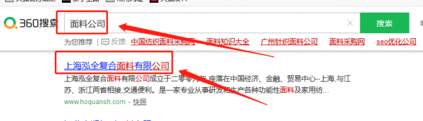 上海泓全*合面料有限公司搜索引擎推廣案例欣賞