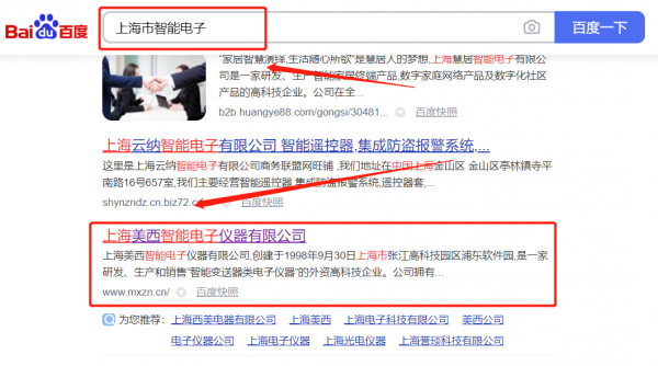 上海美*智能電子儀器有限公司SEO保證在首頁(yè)效果