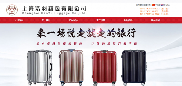上海浩*箱包有限公司網(wǎng)站建設(shè)制作設(shè)計案例欣賞