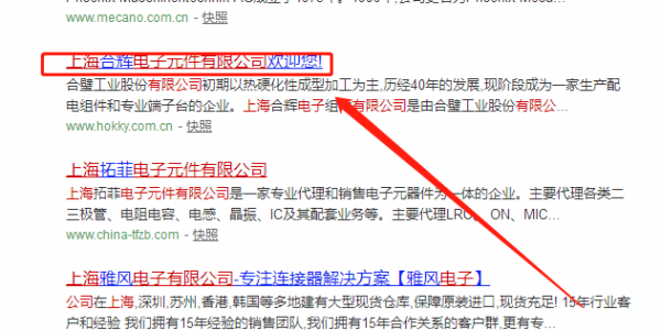 我們公司與上海合輝電子元件有限公司合作中,對(duì)這個(gè)公司所經(jīng)營(yíng)的電子元件X這個(gè)行業(yè)提供了百度快照排名,與改公司的合作,更多的客戶讓我們公司為其提供百度快照排名,通過(guò)每一次合作,我們公司不斷完善自己,同時(shí)希望合作伙伴在經(jīng)營(yíng)的路上越來(lái)越好。