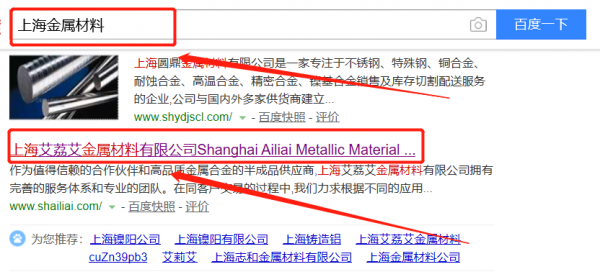 上海艾荔艾金屬材料有限公司選用我司企業(yè)金屬材料的網(wǎng)站優(yōu)化產(chǎn)品,其SEO關(guān)鍵詞有金屬材料??焖賰?yōu)化系統(tǒng)火速推采用智能數(shù)據(jù)系統(tǒng),效果一目了然,包括關(guān)鍵詞排名,消費(fèi),余額等,并通過大量的數(shù)據(jù)分析優(yōu)化廣告效果。上海艾荔艾金屬材料有限公司成立于2011年,是經(jīng)上海市市場監(jiān)督管理局審核的有資質(zhì)的公司,其統(tǒng)一社會信用代碼:91310117574106445X。公司地址:上海市松江區(qū)新浜鎮(zhèn)許村路692號。