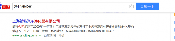 郎特企業(yè)選用我司企業(yè)的網(wǎng)站設(shè)計優(yōu)化產(chǎn)品,其seo關(guān)鍵詞為凈化器. 通過SEO做好排名后,一般可以保持半年以上的良好效果,大大節(jié)約成本,有效提升企業(yè)品牌知名度。按日收費(fèi),不限次數(shù)點(diǎn)擊,為企業(yè)呈現(xiàn)每一步優(yōu)化效果,有據(jù)可循,并承諾關(guān)鍵字上了百度首頁才扣費(fèi)。郎特企業(yè)公司成立于2003年,是經(jīng)上海市市場監(jiān)督管理局審核的有資質(zhì)的公司,公司地址:上海市松江區(qū)車墩鎮(zhèn)三浜路60號
