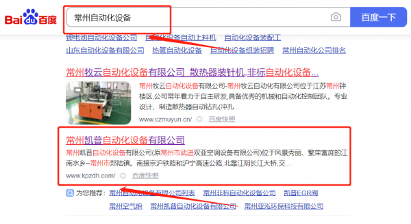 常州凱*自動化設(shè)備有限公司百度關(guān)鍵詞排名最快上詞效果展示