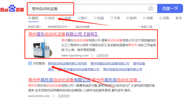 常州普*自動化設(shè)備有限公司百度關(guān)鍵詞排名到首頁無排名不收費(fèi)