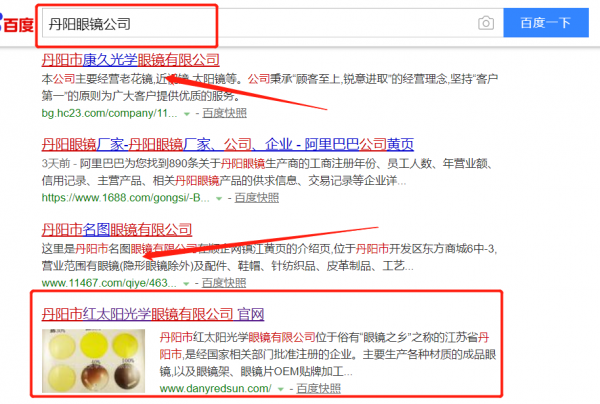 丹陽市紅太陽光學眼鏡有限公司選用我司企業(yè)眼鏡的網(wǎng)站優(yōu)化產(chǎn)品,其SEO關(guān)鍵詞有眼鏡。支持新站、不限排名、按天計費、快速排名、支持百度、360等主流搜索引擎,不達首頁不扣錢,域名空間一步到位,讓您的網(wǎng)站更安全,更放心。丹陽市紅太陽光學眼鏡有限公司成立于2007年,是經(jīng)丹陽市市場監(jiān)督管理局審核的有資質(zhì)的公司,其統(tǒng)一社會信用代碼:9132118166683452XJ。公司地址:江蘇省丹陽市眼鏡城北區(qū)精品樓8038號。