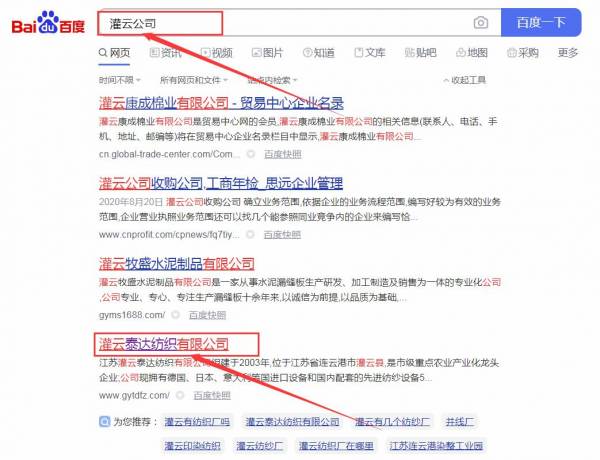 灌云泰*紡織有限公司百度關(guān)鍵詞排名保證在首頁效果