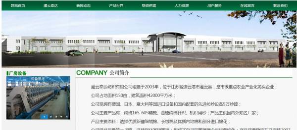 灌云泰*紡織有限公司組建于2003年,位于江蘇省連云港市灌云縣,是市級重點(diǎn)農(nóng)業(yè)產(chǎn)業(yè)化龍頭企業(yè);公司占地面積150畝,建筑面積42000平方米;公司現(xiàn)擁有德國、日本、意大利等國進(jìn)口設(shè)備和國內(nèi)配套的先進(jìn)紡紗設(shè)備5萬紗錠;公司主要產(chǎn)品有:純棉16S-60S精梳、普梳純棉針織、機(jī)織用紗;產(chǎn)品主供國內(nèi)外知名廠家;產(chǎn)品主要原料:選擇優(yōu)質(zhì)新疆細(xì)絨棉、長絨棉及優(yōu)質(zhì)內(nèi)地棉和部分進(jìn)口棉花;公司堅(jiān)持質(zhì)量第一戰(zhàn)略,堅(jiān)持強(qiáng)化基礎(chǔ)管理;形成了自己的管理理念與經(jīng)營特色;產(chǎn)品質(zhì)量穩(wěn)定在烏斯特2007公報(bào)5%-15%水平;國內(nèi)外市場有著較高的知名度。