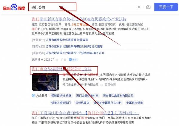 海門(mén)市金*焊接材料有限公司百度關(guān)鍵詞排名最快上詞效果展示