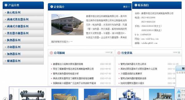 姜堰市恒*液壓機(jī)械制造有限公司選用我司企業(yè)機(jī)械設(shè)備行業(yè)的網(wǎng)站優(yōu)化產(chǎn)品,其SEO關(guān)鍵詞有 姜堰恒達(dá),泰州恒達(dá),泰州市恒*換熱設(shè)備制造有限公司。其特點(diǎn)是用很合適的展示方式、展示效果、站點(diǎn)框架,把客戶(hù)及其用戶(hù)很關(guān)心的問(wèn)題突出表現(xiàn);并以簡(jiǎn)潔明朗的設(shè)計(jì)風(fēng)格,清晰展現(xiàn)公司水平實(shí)力,確保一秒抓住目標(biāo)用戶(hù)眼球,給用戶(hù)留下良好的第一印象。姜堰市恒*液壓機(jī)械制造有限公司成立于1988年,是經(jīng)姜堰市市場(chǎng)監(jiān)督管理局審核的有資質(zhì)的公司,其統(tǒng)一社會(huì)信用代碼:913212041***27912E 。公司地址:泰州市姜堰區(qū)婁莊鎮(zhèn)先進(jìn)村。