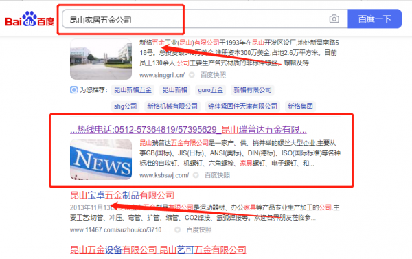 昆山瑞*達五金有限公司網(wǎng)站排名最快上詞效果展示