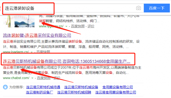 我們公司與連云港貝斯特機(jī)械設(shè)備有限公司合作中,對(duì)這個(gè)公司所經(jīng)營(yíng)的裝卸設(shè)備這個(gè)行業(yè)提供了百度快照排名,與該公司的合作,更多的客戶(hù)讓我們公司為其提供百度快照排名,通過(guò)每一次合作,我們公司不斷完善自己,同時(shí)希望合作伙伴在經(jīng)營(yíng)的路上越來(lái)越好。
