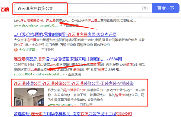 連云港*騰裝飾工程有限公司選用我司企業(yè)家居軟飾的網(wǎng)站優(yōu)化產(chǎn)品,其SEO關鍵詞有家居軟飾的。按天計費,最快7天上詞,不到首頁不扣費。關鍵詞質量保證,白帽SEO符合百度算法,360、搜狗、移動端等排名效果免費贈送。連云港*騰裝飾工程有限公司成立于2007年,是經(jīng)連云港市市場監(jiān)督管理局審核的有資質的公司,其統(tǒng)一社會信用代碼:91320706**4925196G。公司地址:江蘇省連云港市海州區(qū)解放東路282號新世紀商貿城15號樓2商鋪。