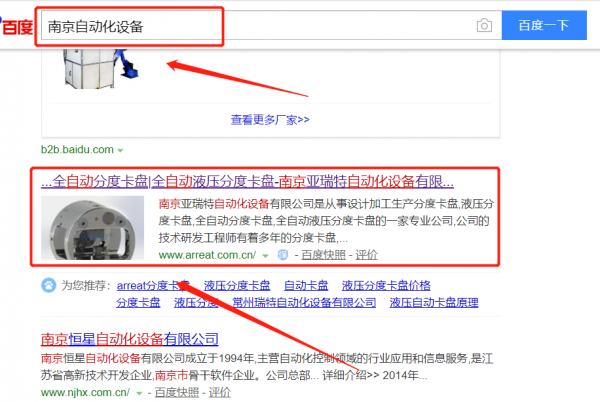 我們公司與南京亞瑞特自動化設(shè)備有限公司合作中,對這個(gè)公司所經(jīng)營的自動化設(shè)備這個(gè)行業(yè)提供了關(guān)鍵詞搜索排名,與該公司的合作,更多的客戶讓我們公司為其提供關(guān)鍵詞搜索排名,通過每一次合作,我們公司不斷完善自己,同時(shí)希望合作伙伴在經(jīng)營的路上越來越好。