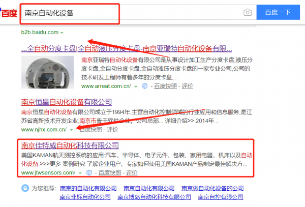 我們公司與南京佳特威自動化科技有限公司合作中,對這個公司所經(jīng)營的自動化設(shè)備這個行業(yè)提供了關(guān)鍵詞搜索排名,與該公司的合作,更多的客戶讓我們公司為其提供關(guān)鍵詞搜索排名,通過每一次合作,我們公司不斷完善自己,同時希望合作伙伴在經(jīng)營的路上越來越好。