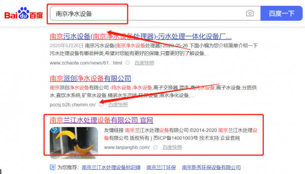 南京蘭*水處理設(shè)備有限公司整站優(yōu)化排名效果展示