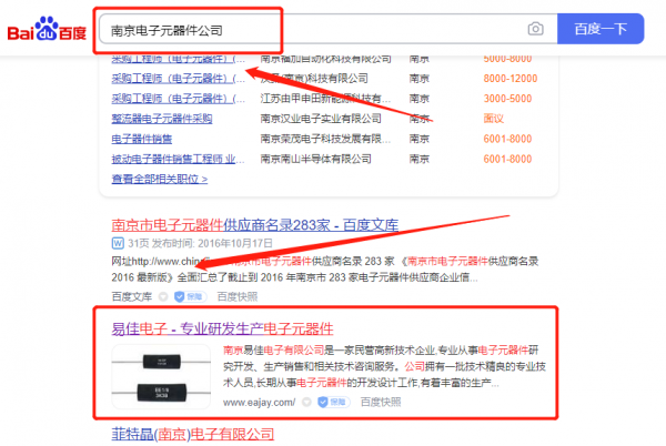 我們公司與南京易*電子有限公司合作中,對(duì)這個(gè)公司所經(jīng)營(yíng)的電子元器件這個(gè)行業(yè)提供了百度關(guān)鍵詞排名,與該公司的合作,更多的客戶讓我們公司為其提供百度快照排名,通過(guò)每一次合作,我們公司不斷完善自己,同時(shí)希望合作伙伴在經(jīng)營(yíng)的路上越來(lái)越好。