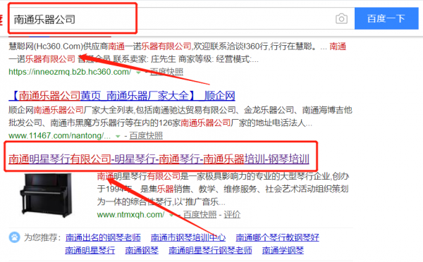 我們公司與南通明星琴行有限公司合作中,對(duì)這個(gè)公司所經(jīng)營(yíng)的樂(lè)器這個(gè)行業(yè)提供了百度快照排名,與該公司的合作,更多的客戶讓我們公司為其提供百度快照排名,通過(guò)每一次合作,我們公司不斷完善自己,同時(shí)希望合作伙伴在經(jīng)營(yíng)的路上越來(lái)越好。