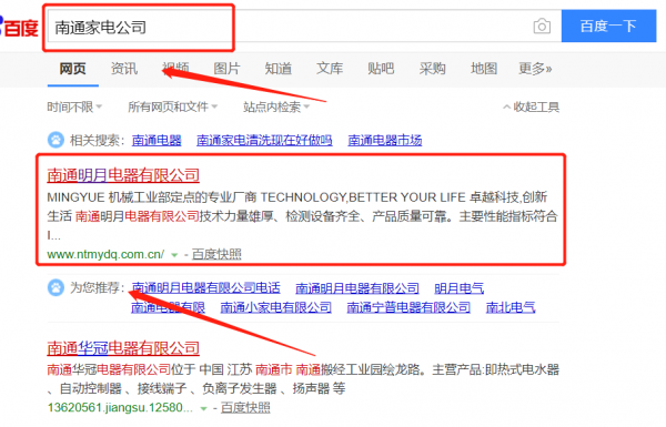 南通明月電器有限公司與本司簽約百度快照排名協(xié)議