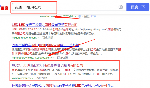 南通*暉電子照明有限公司網(wǎng)站優(yōu)化最快上詞效果展示