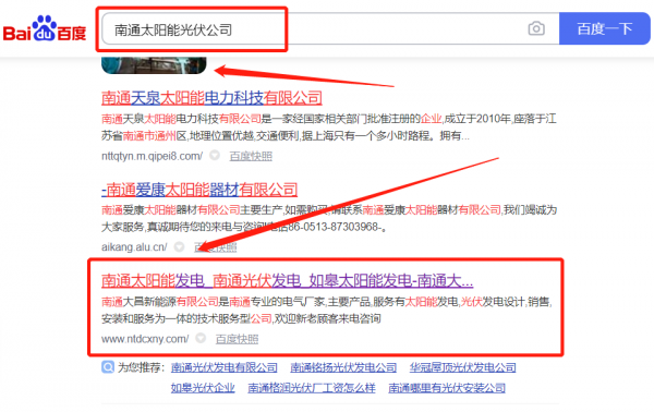 我們公司與南通*昌新能源有限公司合作中,對(duì)這個(gè)公司所經(jīng)營(yíng)的太陽(yáng)能光伏這個(gè)行業(yè)提供了SEO,與該公司的合作,更多的客戶讓我們公司為其提供快速排名,通過每一次合作,我們公司不斷完善自己,同時(shí)希望合作伙伴在經(jīng)營(yíng)的路上越來越好。